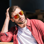 Square faces generally suit glasses frames with round or oval shapes that can angle the face. Our Retro Pilot frames can work well. Avoid rectangular frames, which will highlight the sharp angles of the face.